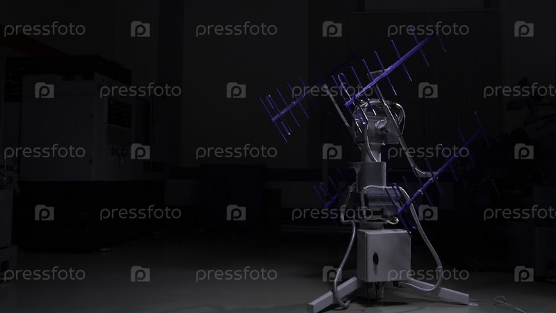 Высокотехнологичная сложная электронная связь, радио- или телевизионная антенна. Демонстрация высокотехнологичной антенны. Устройство связи. Телекоммуникационный мачта с HD микроволновой коммуникацией