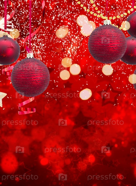 Крупный план гирлянды из красных рождественских шаров на праздничном светящемся фоне