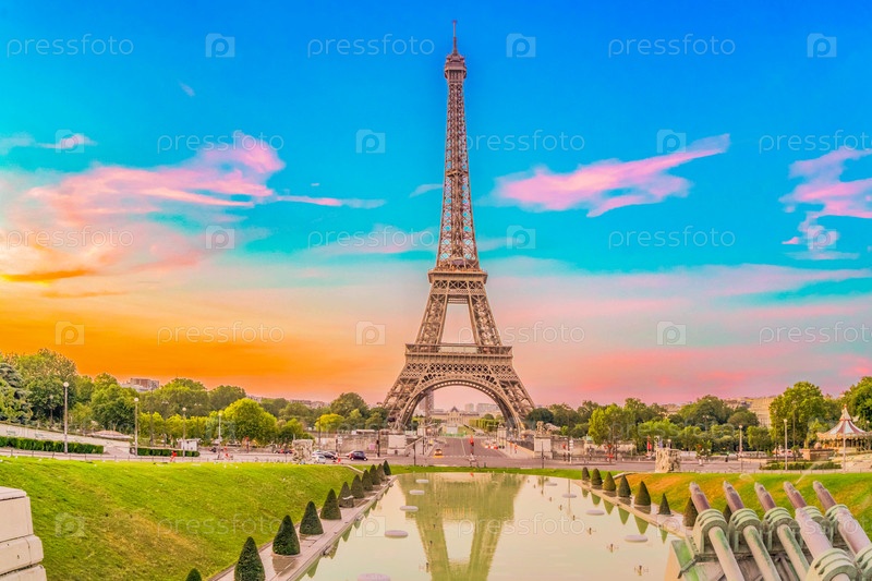 Эйфелева башня и вид с площади Трокадеро в Париже