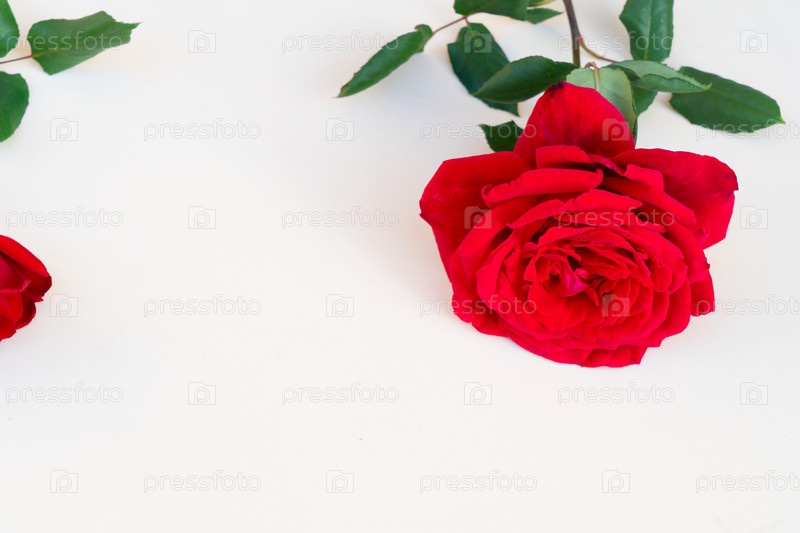 Темно-красная свежая роза на нейтральном бежевом фоне