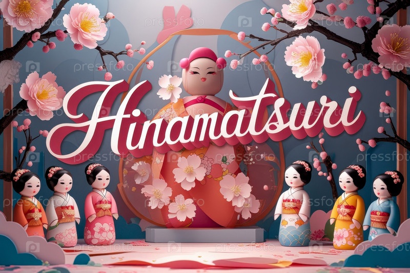 Открытка, посвященная традиционному японскому празднику Хинамацури (японский фестиваль кукол), созданный с использованием искусственного интеллекта