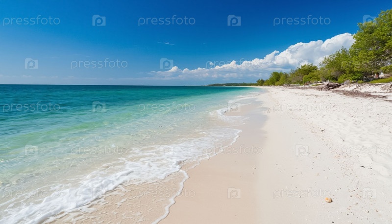 Морское побережье славится кристально чистой голубой водой и белым песком