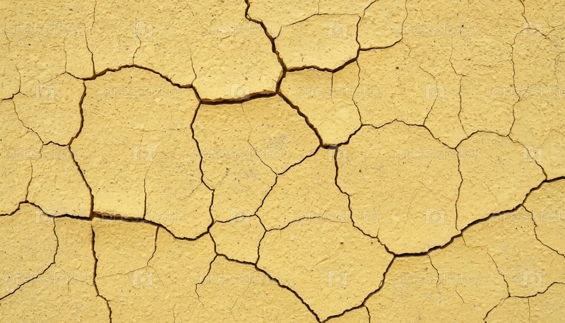 Желтая оштукатуренная стена с трещинами