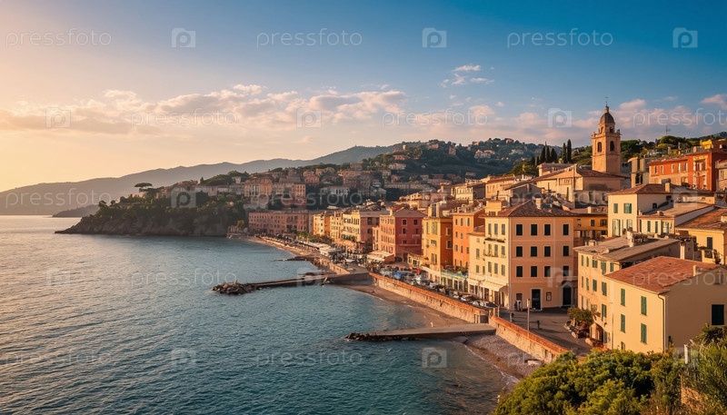 Южный город летом на морском побережье, созданный искусственным интеллектом
