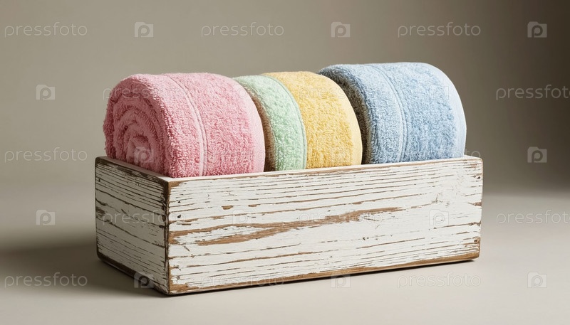 Пастельные полотенца в белой деревянной коробке