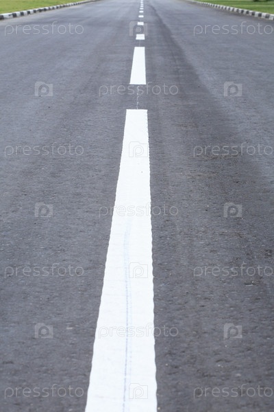 План асфальтированной дороги с белыми маркировочными линиями, идущими на расстояние