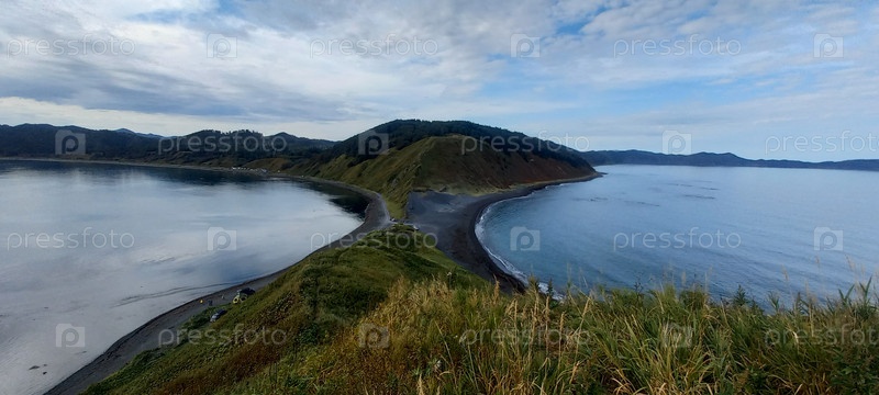 мыс бухта морской пейзаж остров лагуна море пейзаж сопка скала песок береговая линия отражение облако туризм остров пляж достопримечательность ландшафт отпуск красота природа небо лето трава облака россия риф