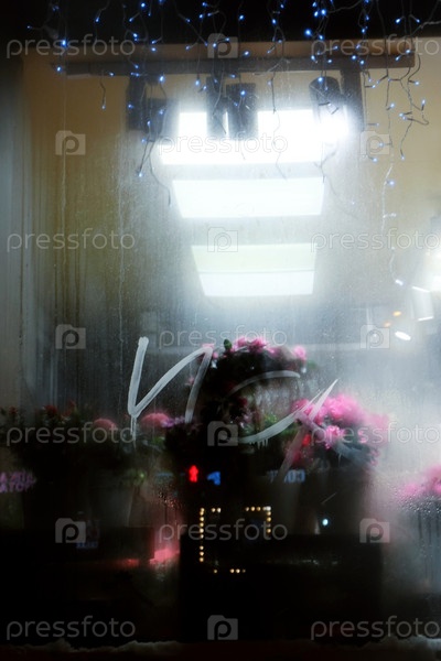 Ночное окно цветочного магазина