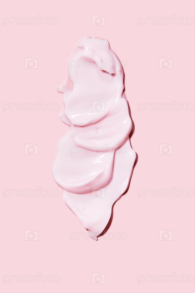 Мазь розового крема на розовом фоне. Красочный крем с примером мазка. Крем, лосьон для лица или тела. Уход за кожей
