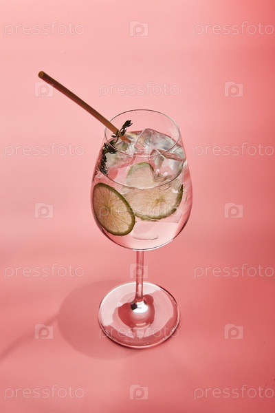 Холодный алкогольный или безалкогольный коктейль со льдом, долей лайма и тимьяном