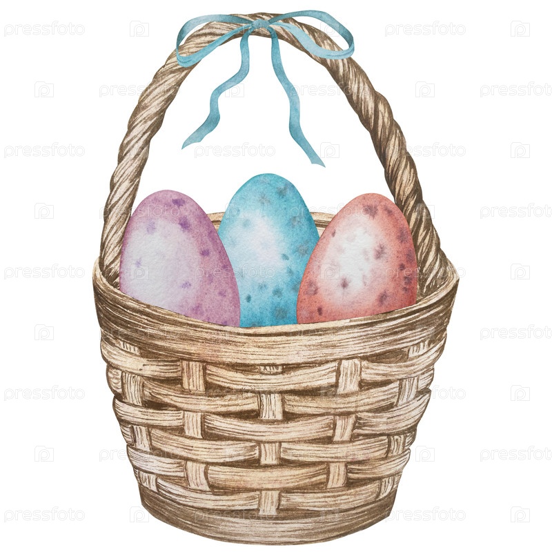 Водяные краски пасхальные яйца в корзине
