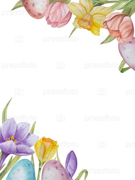 Водяные краски пасхальные яйца и весенние цветы