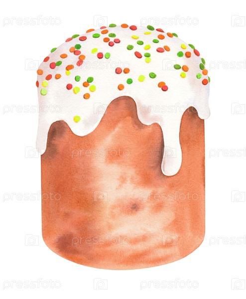 Пасхальный торт. Иллюстрация сделана вручную акварелью. Подходит для ткани, обоев, упаковочной бумаги, поздравительных открыток, дизайна, декора и иллюстраций