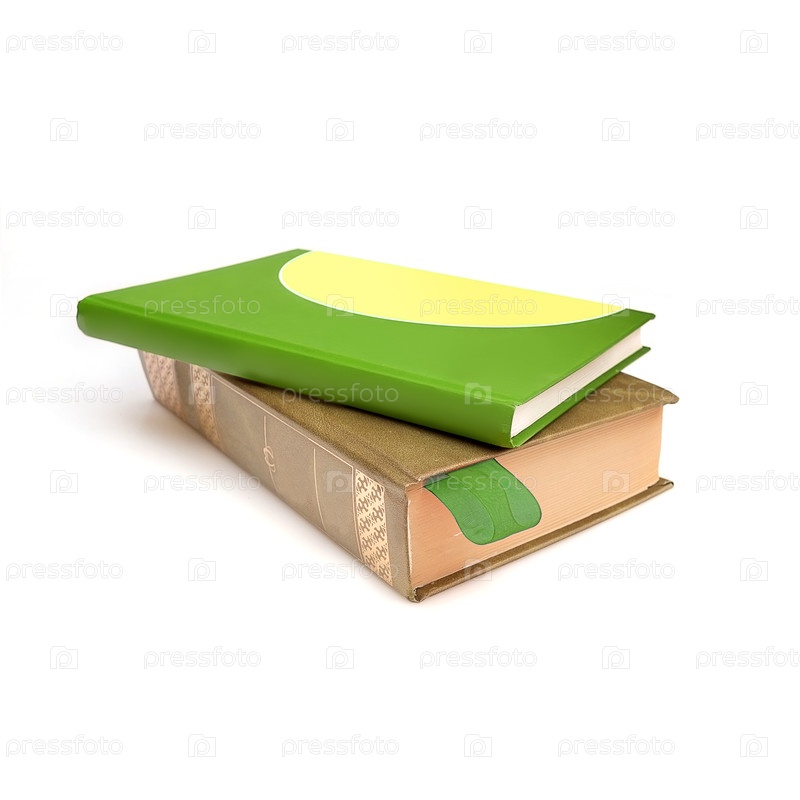 Стол 2 книг в цветных обложках с белыми листами, изолированными на белом фоне