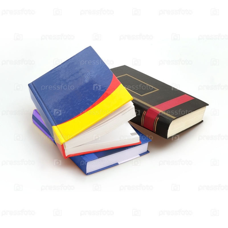 Куча книг в цветных обложках с белыми листами, изолированными на белом фоне