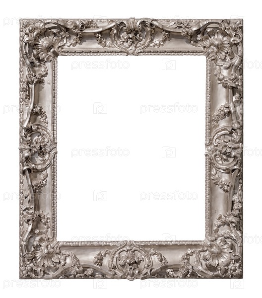 Серебряная рама для картин, зеркал или фотографий, изолированных на белом фоне