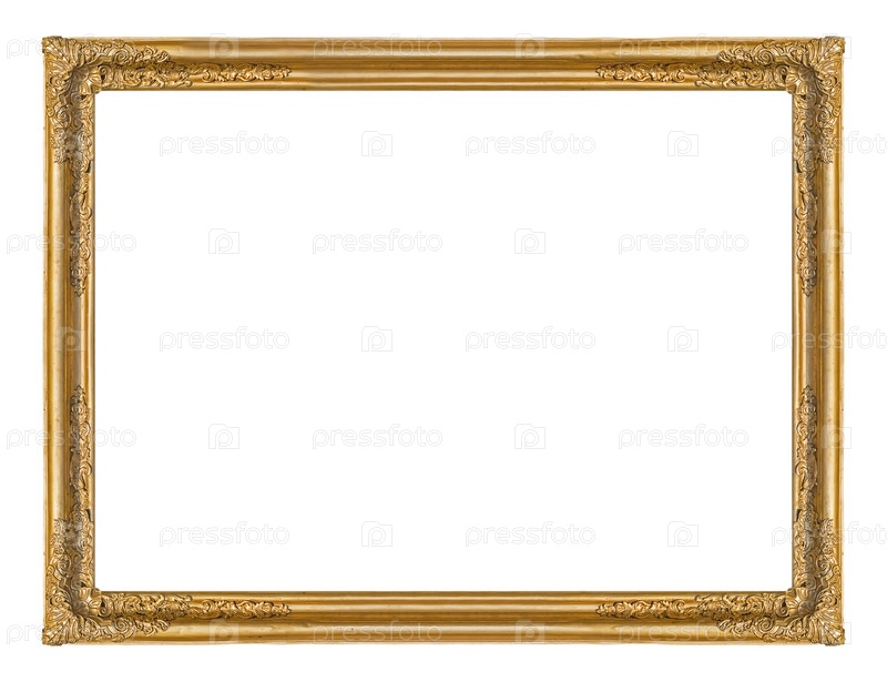 Золотая рама для картин, зеркал или фотографий, изолированных на белом фоне