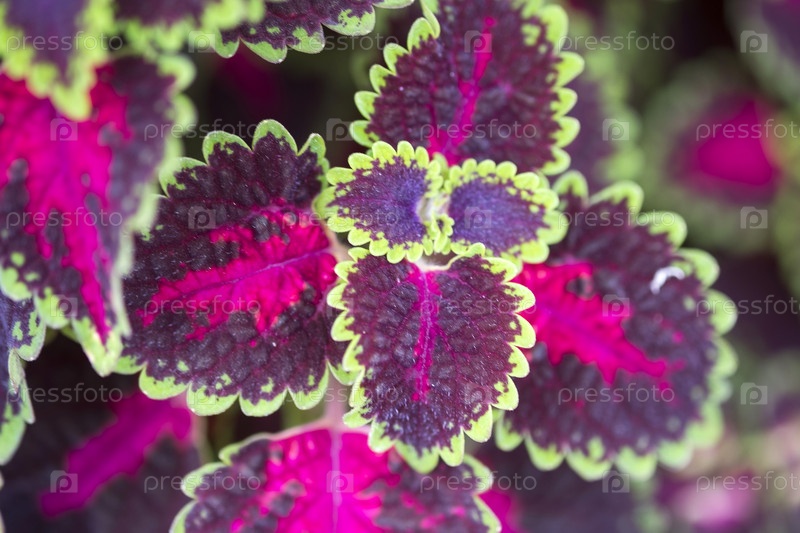 Колеус - травянистый кустарник, естественный изолированный фон в ботаническом саду