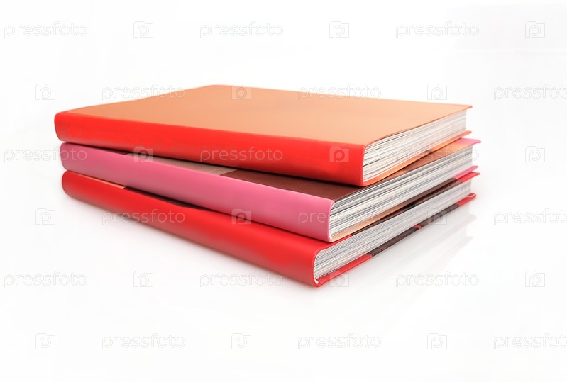 Куча книг в цветных обложках с белыми листами, изолированными на белом фоне