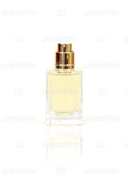 Размещение бутылок с парфюмом на белом фоне