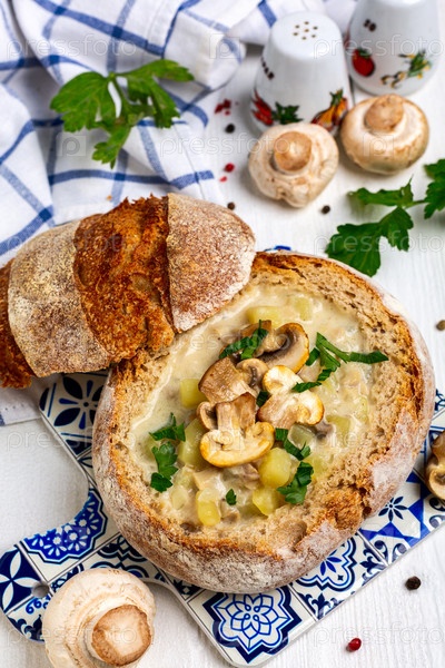 Картофельно-грибковый суп в буханке хлеба