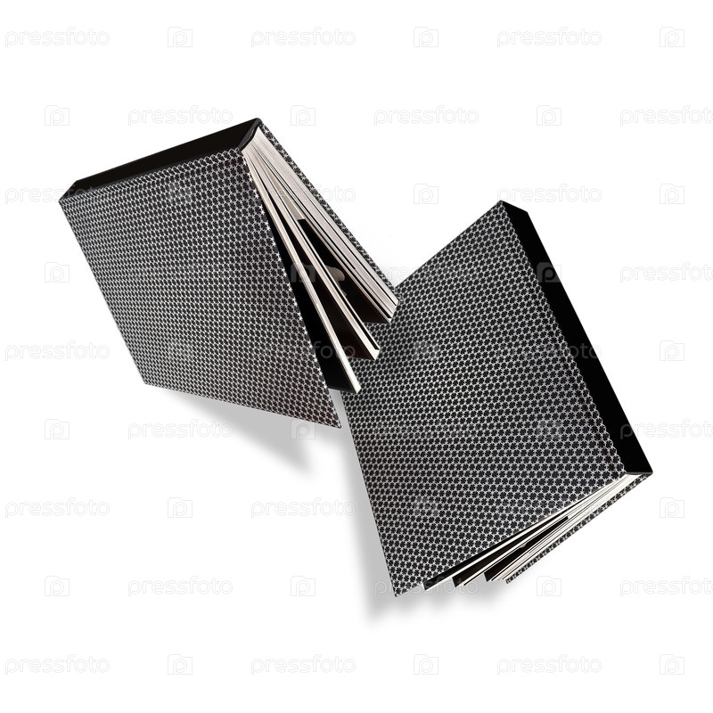 Летающие книги в цветных обложках с белыми листами, изолированными на белом фоне
