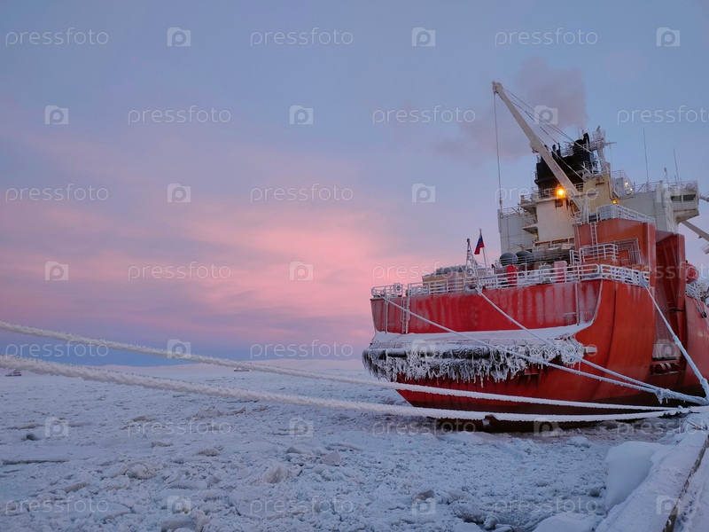 Кормление судна на причале морского порта Певек Арктическая зимняя навигация Россия Чукотка АО Январь 08 2022