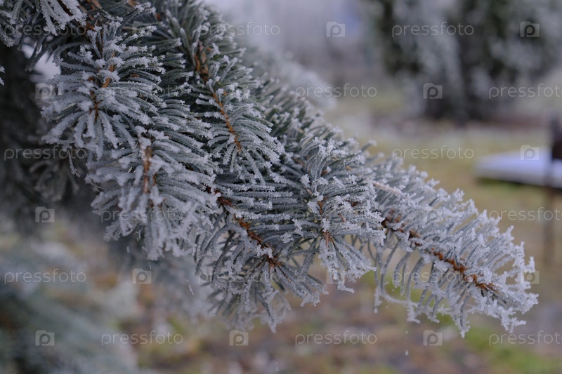 Замороженные ветви голубой елей.Россия Воронежская область Декабрь