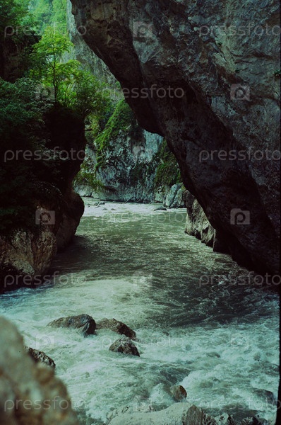 Река Мзымта гремит среди висящих скал