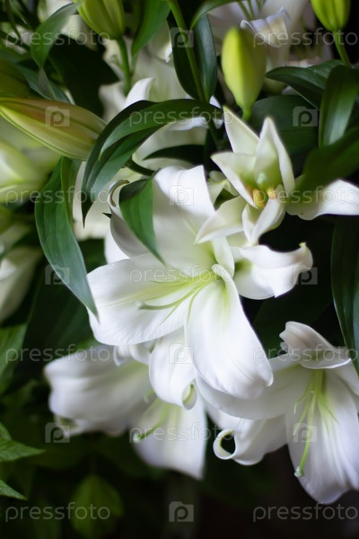 Белые лилии в пышном букете
