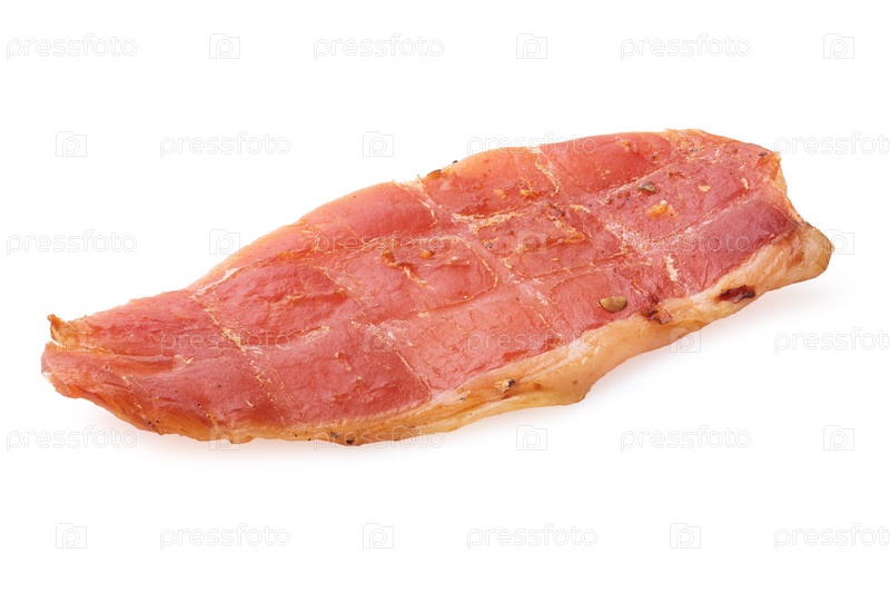 Один кусок сухого свинины, выделенный на белом фоне, сложенное изображение создано без генеративного ИИ