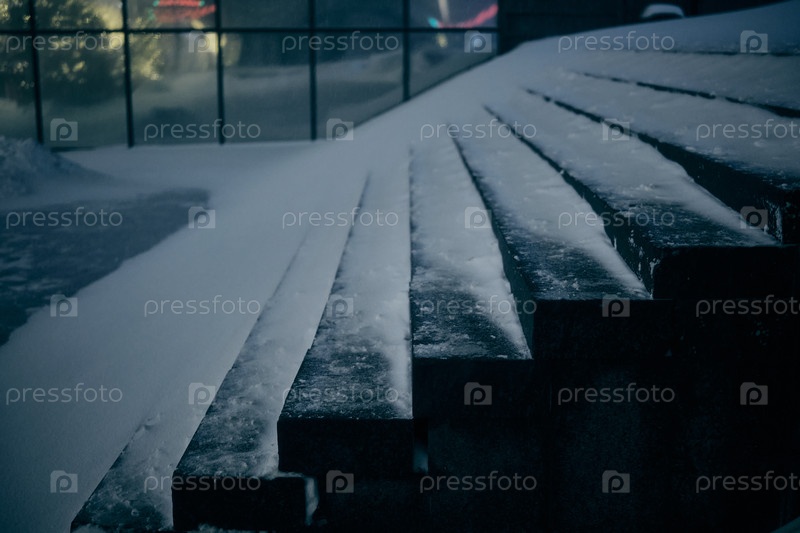 Ступени лестницы были покрыты снегом, зимой