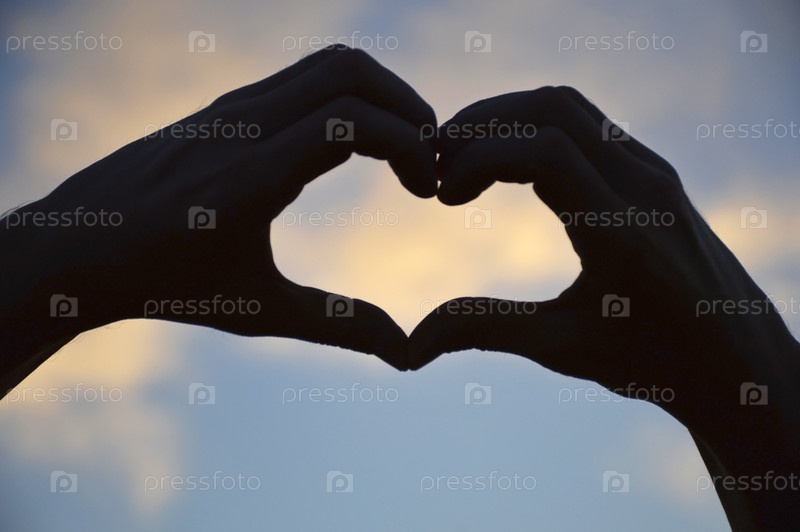 Женские склады руки вышли из форму сердза против neba Закте или розы. символ любви, верности, сочувствия и признания чувства. ♪ ♪