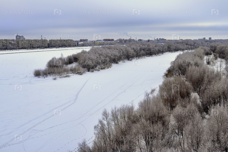 Зимний вид города Омска на берегу реки Иртыш