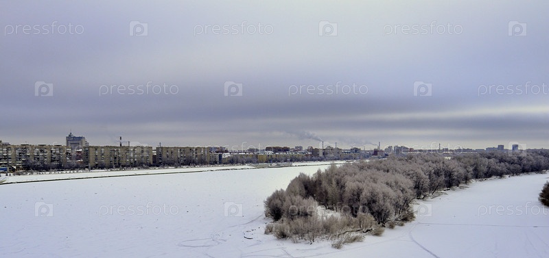 Зимний вид города Омска на берегу реки Иртыш