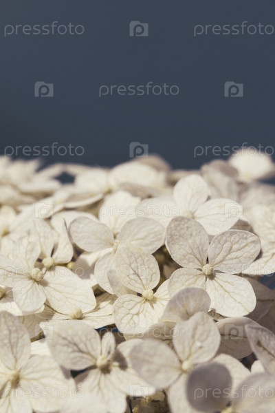 Гортензия цветет в ближайшем плане на синем фоне с копированием пространства