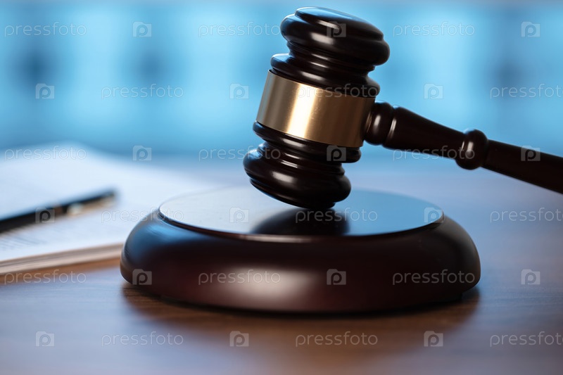 Судейский молоток и бумаги на столе