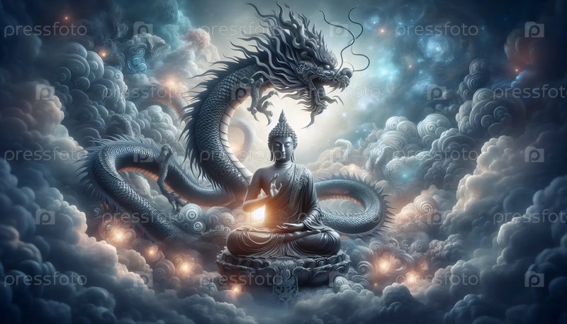 Будда с изображением, созданным драконом