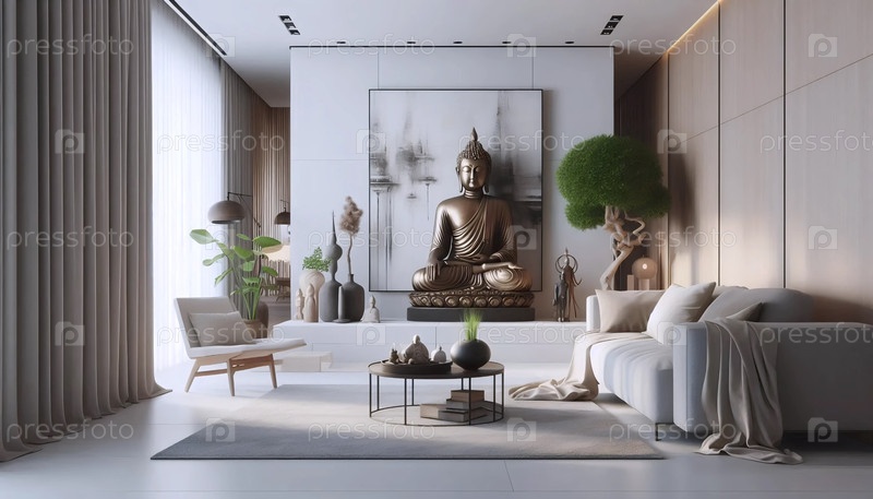Современный интерьер Будды, Сгенерированное изображение