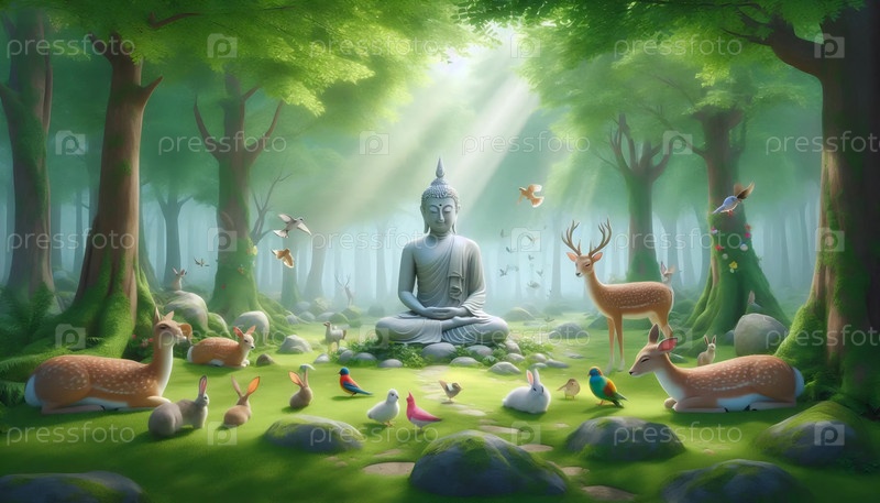 Будда с животными Созданное изображение