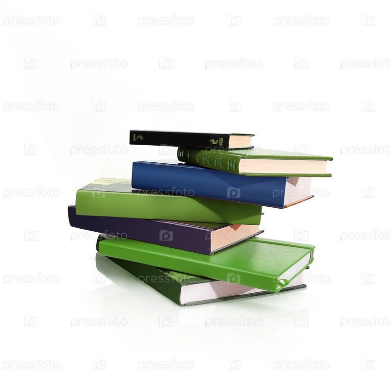 Куча книг в цветных обложках с белыми листами, изолированными на белом фоне