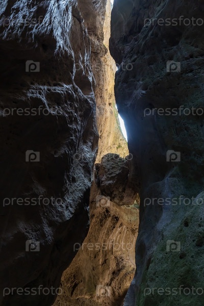 Устойчивые каменные стены ущелья Карадак, каньона в Республике Дагестан, Россия.Это памятник природы регионального значения.Путешествие по Северному Кавказу