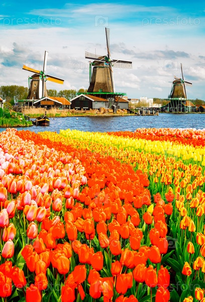 Голландская ветряная мельница над тюльпанами One