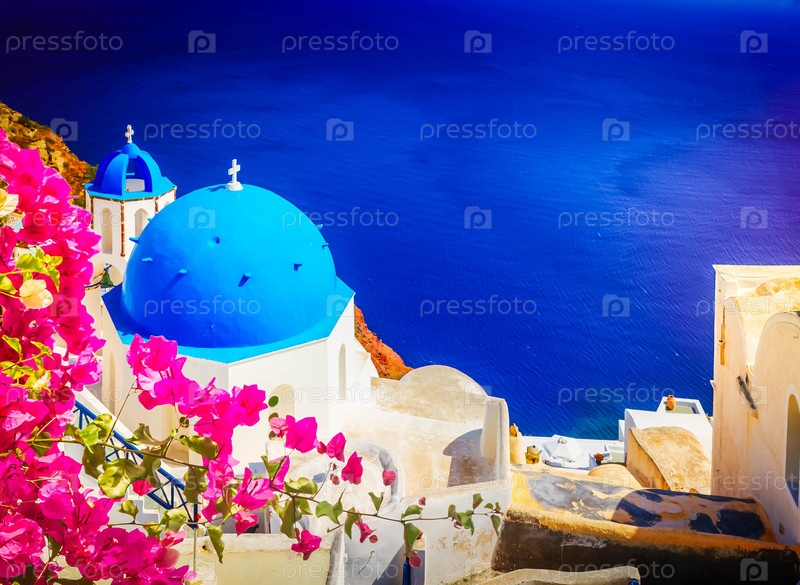 Традиционный синий купол с морем, Санторини