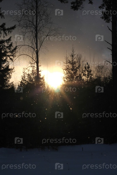 Зимнее солнце Лесной лес