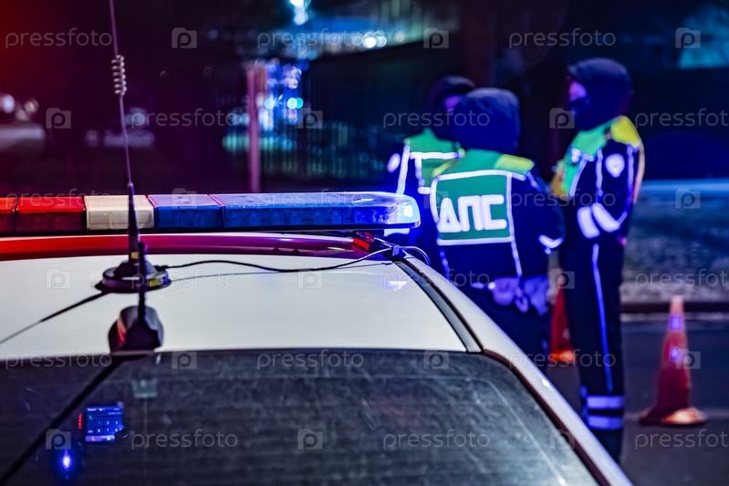 Ночной патруль DPS и полицейская машина с мигающими огнями