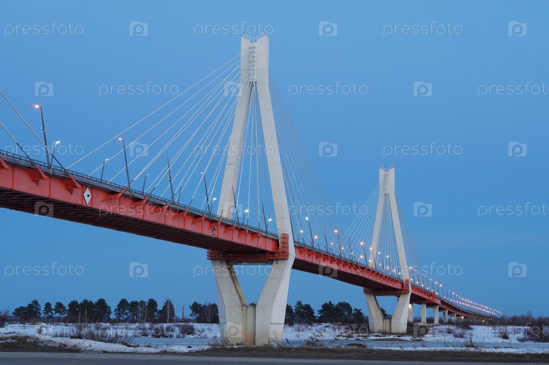 Муромский канатный мост через Оку вечером