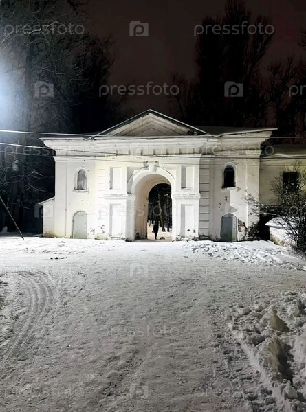 Колокольня ворот в Антониевском монастыре в Великом Новгороде. январь 2026