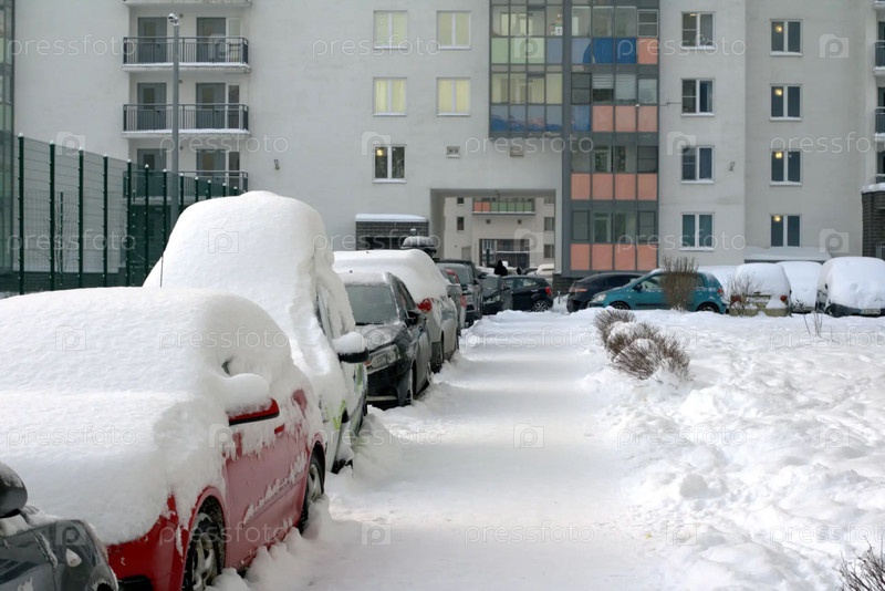 Автомобили, припаркованные под снегом в Мурино. Ленинградская область. январь 2026