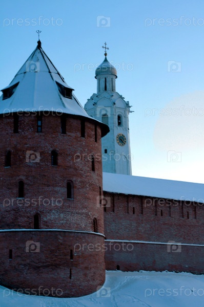 Столичная башня и часы, звонившие с новгородскими заключенными в Великом Новгороде. январь 2026